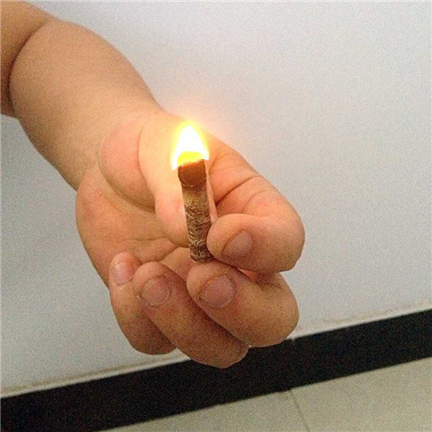 壓制成的顆粒,直接用打火機(jī)點燃↑