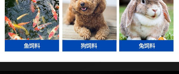 3、顆粒成分均勻,形狀整齊,顆粒粗細(xì)的孔徑可分為:Φ2、Φ2.5、Φ3、Φ3.5、Φ4、Φ5、Φ6、Φ7、Φ8等。用戶(hù)訂貨時(shí),可根據(jù)養(yǎng)殖動(dòng)物不同生長(zhǎng)時(shí)期需要選擇。